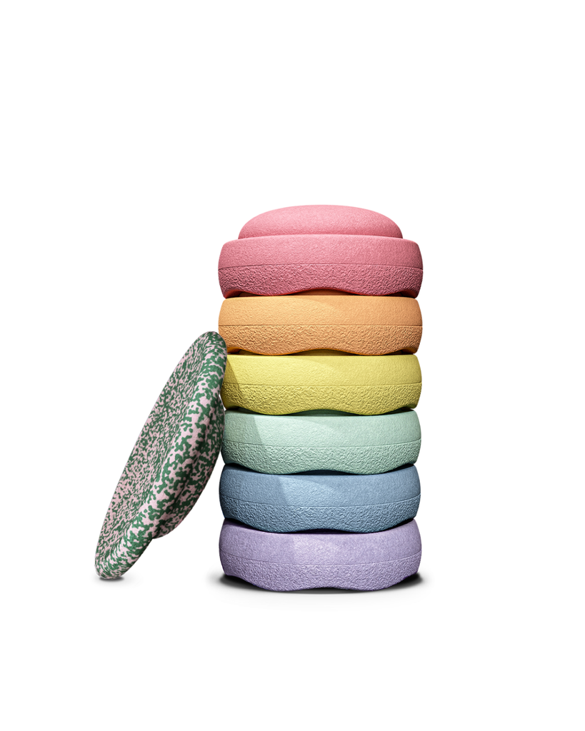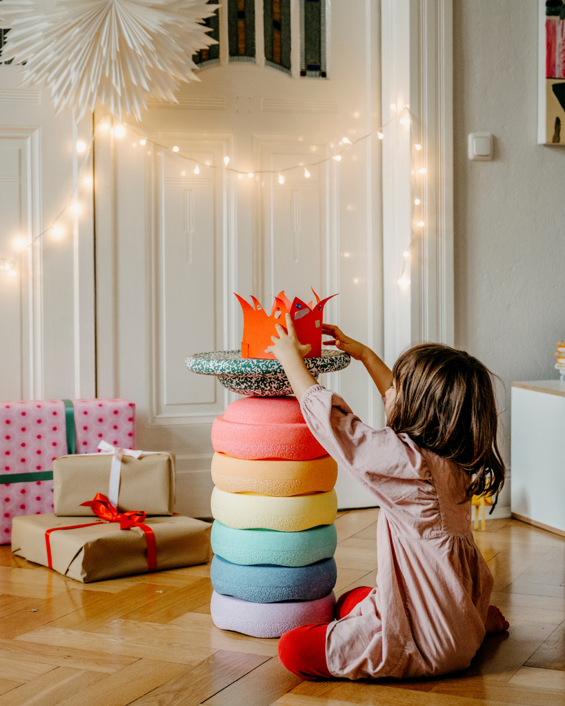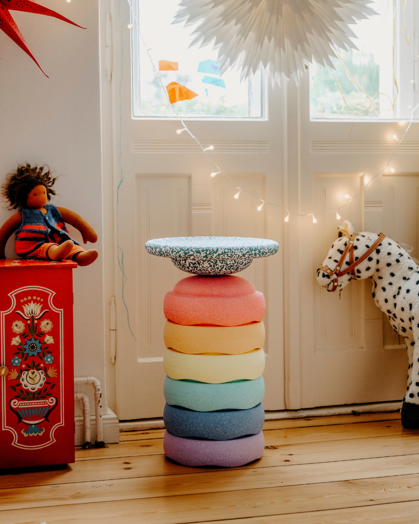 Stapelstein® elements to slide. A carpet or some kind of yoga mat prevent the elements from sliding.