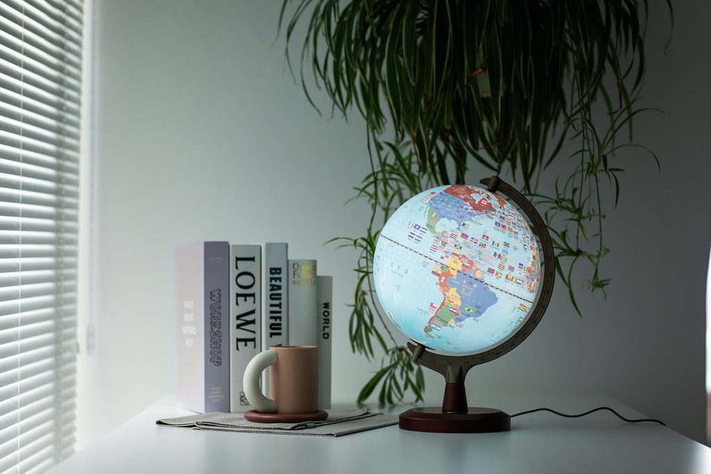 It's the first multi-functional globe of its kind that combines gaming and voice interaction. When not in use, it serves as an elegant decor piece, featuring a high-quality wooden base and an adjustable LED light.