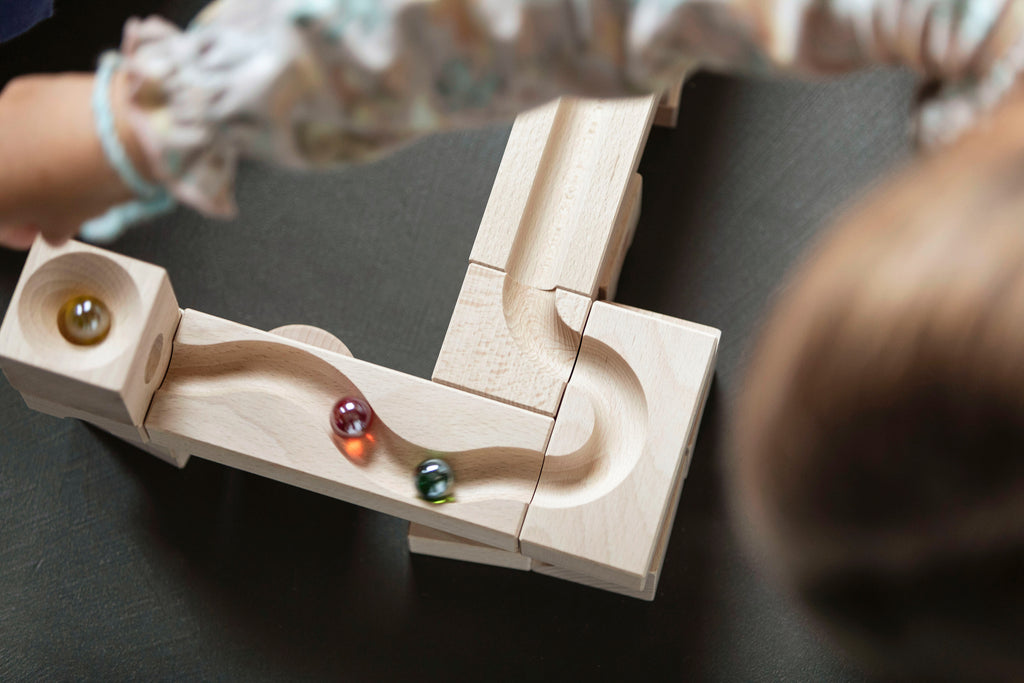 With JUNIOR, children aged 3 and up can discover the world of marble runs through play. The long tracks can be easily combined with other elements and usually guide the marble visibly along the surface – for quick successes and sparkling eyes.