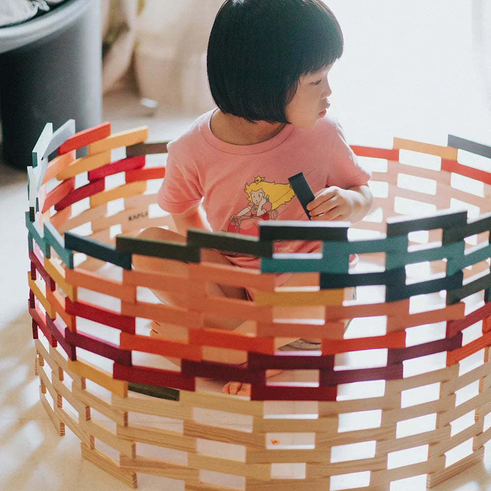 All KAPLA planks are made from natural Landes pine, and coloured using food-safe paints for safe play for ages 2+.