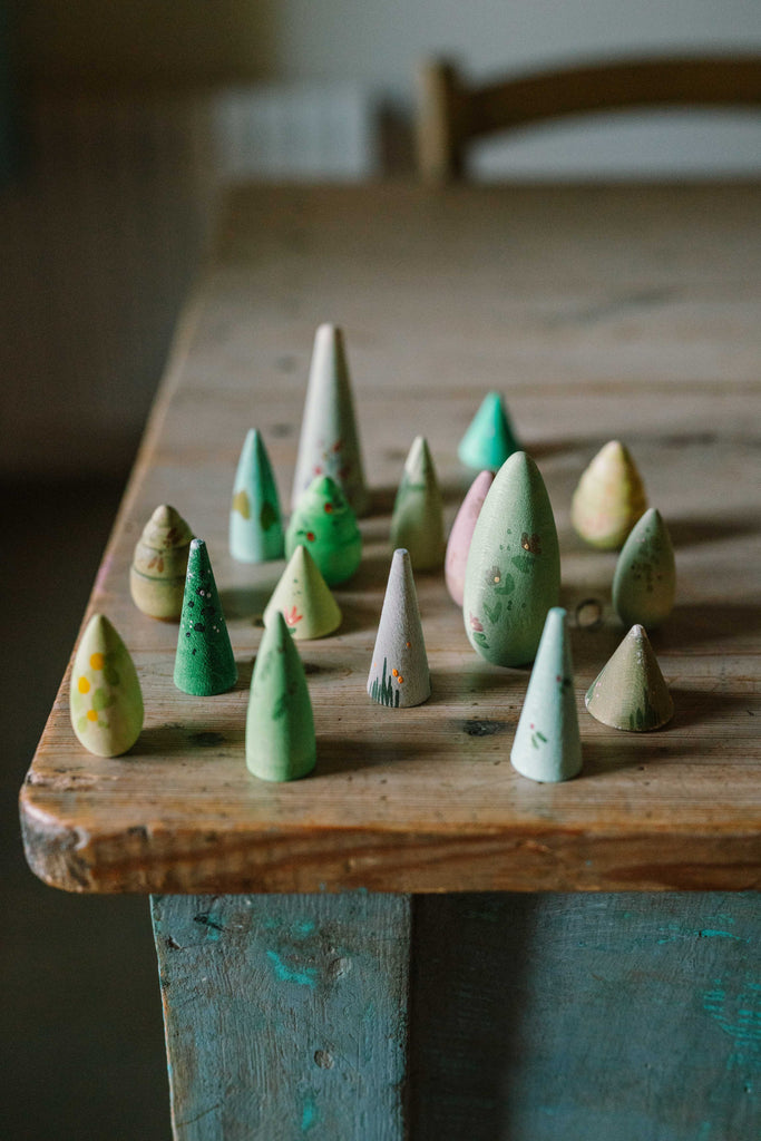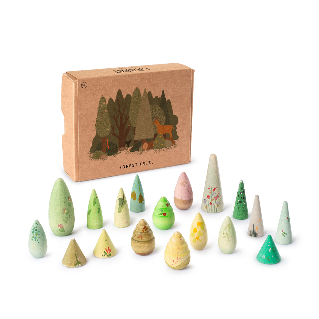A forest in your hands—this set of hand-painted wooden trees is made for open-ended play, with gentle shapes and earthy tones that invite little ones to build, arrange, and explore freely. Whether they’re setting the scene for tiny animal friends, building a woodland path, or simply exploring and sorting, these tres bring nature into the playroom—encouraging quiet moments of curiosity, intention, and connection.
