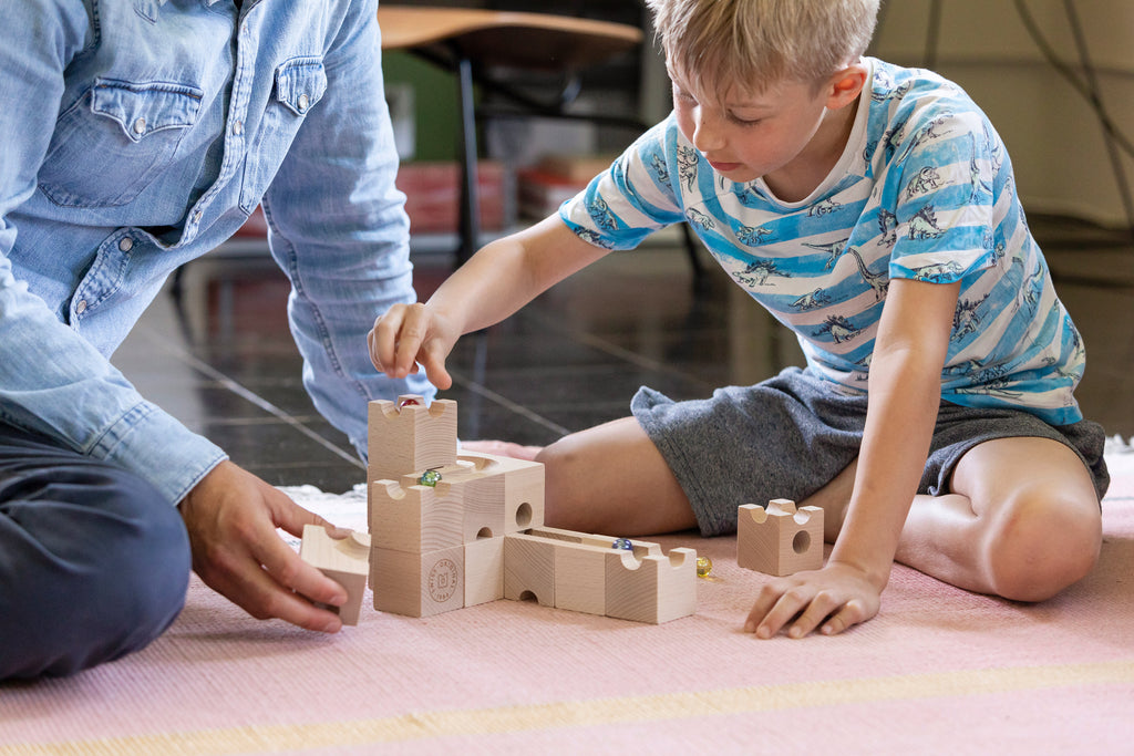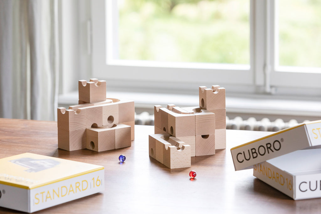 STANDARD 16 is the ideal introduction to the world of CUBORO or a compact expansion for all who want to try something new. With 16 cubes containing the core elements of the system, you build your first marble runs where surface and tunnel elements interact in clever ways.